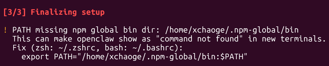 echo 'export PATH="$HOME/.npm-global/bin:$PATH"' >> ~/.bashrc && source ~/.bashrc
