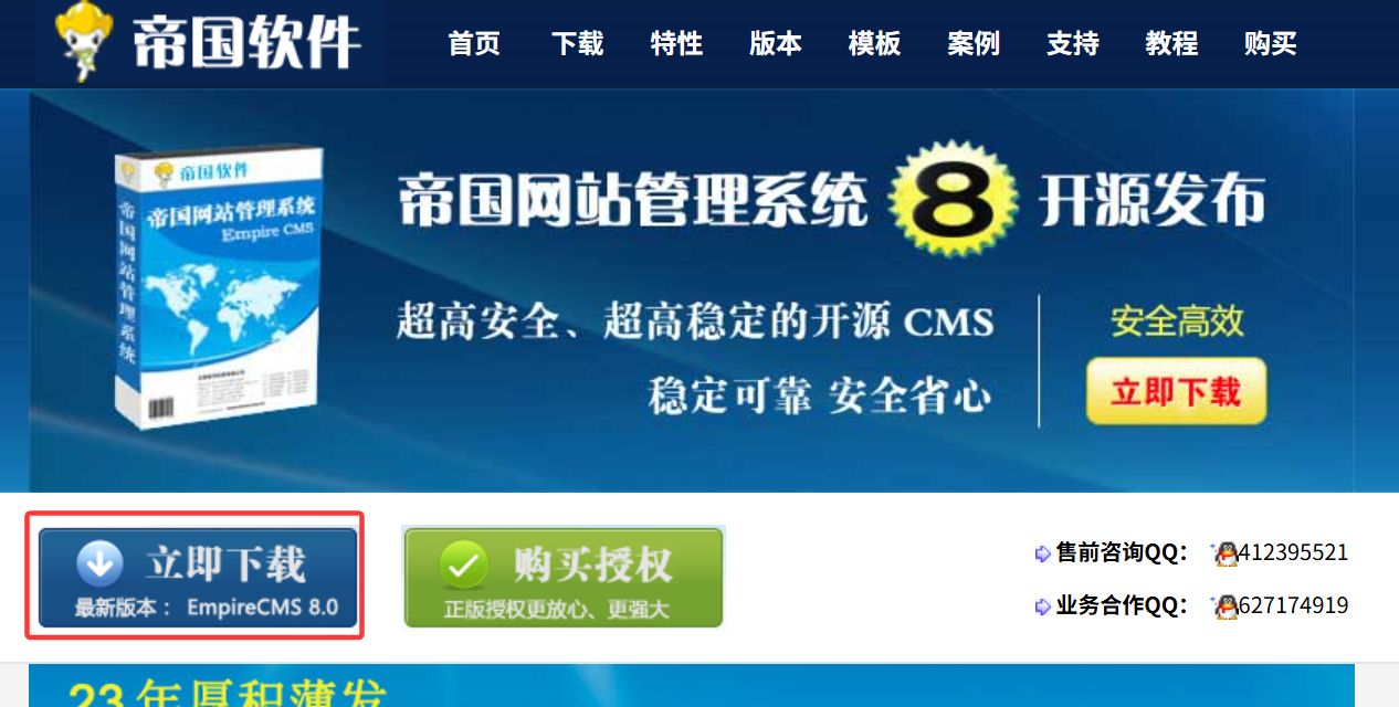 首先我们进入帝国cms网站官网:http://www.phome.net