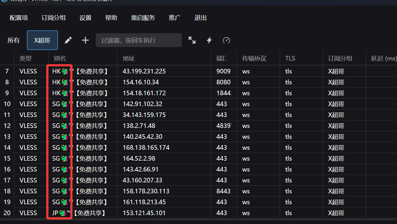 这个是优选订阅地址,软件里出现ip对应的国家,但是不是很准,如下图