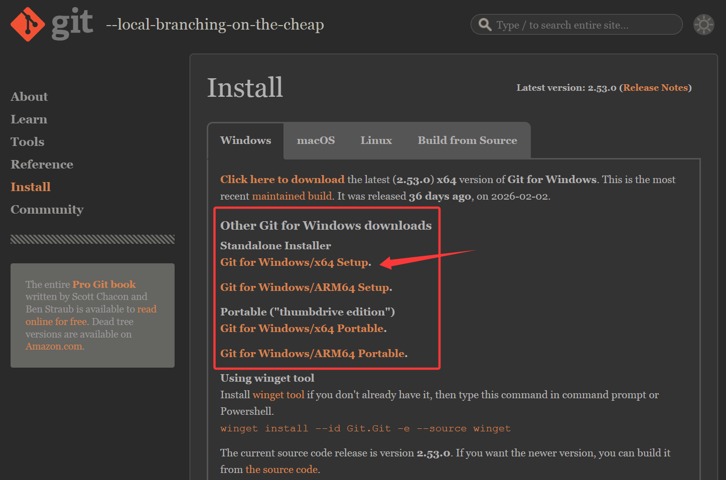 看下图是下载页面,根据自己的需要下载,我的是Windows/x64,所以我下载:Git for Windows/x64 Setup,下载之后所有选项都默认,进行安装即可,详细步骤可以看本文章的标题下方的YouTuBe视频教程。