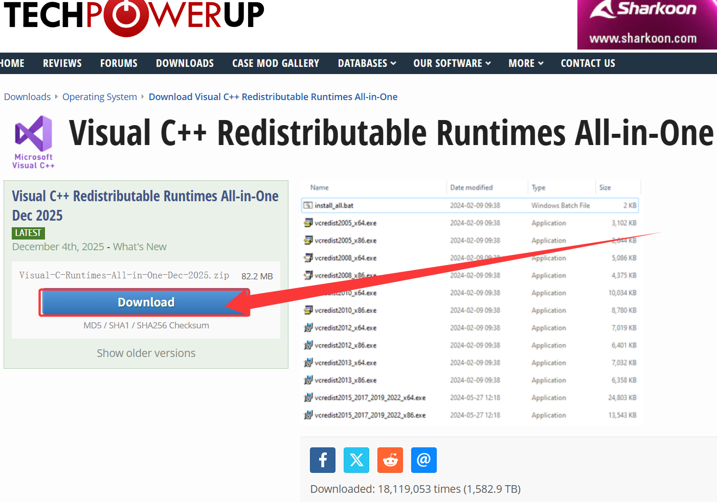 C++支持库 网站内下载链接:https://www.techpowerup.com/download/visual-c-redistributable-runtime-package-all-in-one/