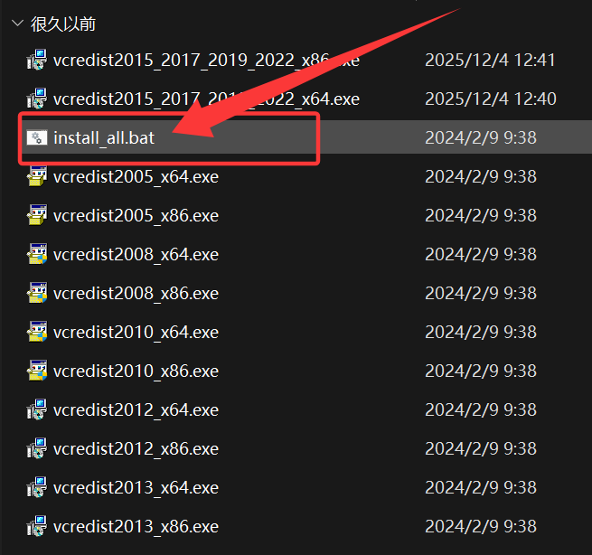下载好之后,解压压缩包。得到下图中的文件,然后双击“install_all.bat”进行安装,所有的都要安装,不要只安装一个,因为这个是c++库,你不知道会用到哪个。